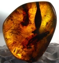 This genuine piece of natural Amber originates from Chiapas Mexico. A nice LEAF was discovered inside this exceptional amber piece!! Insects, organic inclusions and rare life forms are highly valued by many collectors, as rare & unique specimens. There is an increasing interest in Mexican amber, I believe this is a fine investment & a worthy addition to any fine private collection. There could be more to be discovered in this piece, when studied more Carefully. This type of amber comes from an ancient tree called "Hymenea" and it has been scientifically dated to be at least 22-28 million years old.For more information please READ ABOUT MEXICAN AMBER.