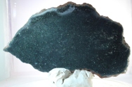 This Jadeite slab comes from the Motagua River valley in Guatemala.PINE GREEN COLOR stone with dark and light tones of sage green .This piece is authentic JADEITE.Two sides have been cut away, so you can see the quality of this piece. Fine grained, top quality jadeite. Light strees fractures, as you can see in the pictures, a very solid block of jadeite. Mined by hand.No translucency.