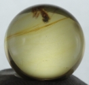 Clear cognac green blue Mexican Amber sphere measures 14 mm in diameter. Solid piece with a broken ant can make a great gift or fine addition to any amber collection. Glows green in the sun! This type of amber is has not been heat treated boiled or clarified. 100% natural as its found straight from the mine. Certified authentic by known scientific authorities well known to be from the Miocene to Oligocene geological Epochs at least 22 million years old!