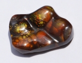This Fire Agate was mined in the famous Aguascalientes in Mexico. The colors that you see are natural as seen under sunlight or a bright light. This piece was meticulously hand carved shows beautiful colors a unique shape and an excellent polish. Fire Agate is only found in Mexico and USA.