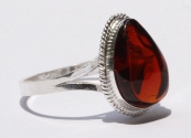 950 SILVER RING WITH RED MEXICAN AMBER ADJUSTABLE