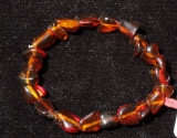 This amber bracelet was gracefully created from natural red amber.I was carefuly drilled. It is strung on stretch cord and will adjust to most wrist sizes.