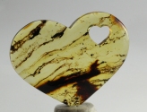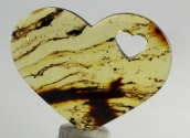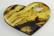 This amber heart pendant was cut out of carefully selected raw amber with very desirable inclusions and streaks. Only material with no fractures can safely make this cut. The result is a bright attractive piece! It is set with a leather band We can adjust this for you and make it longer or shorter on request.