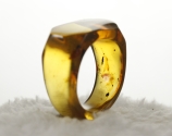 This ring was carved from one choice piece of natural Mexican amber.Organic inclusions and No fractures.